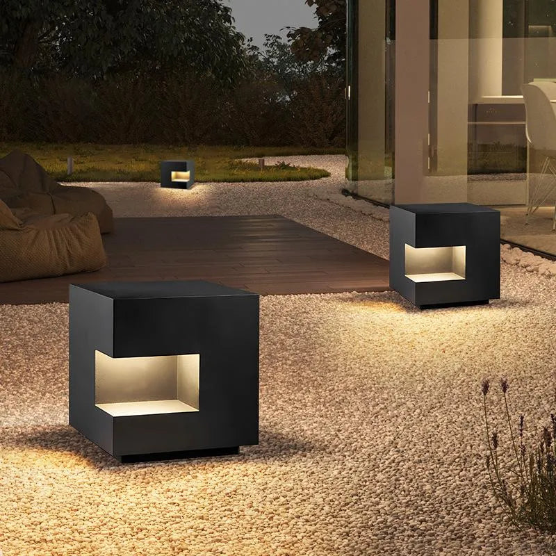 Lampe de Jardin Extérieur Solaire en Forme de Cube Noir Minimaliste