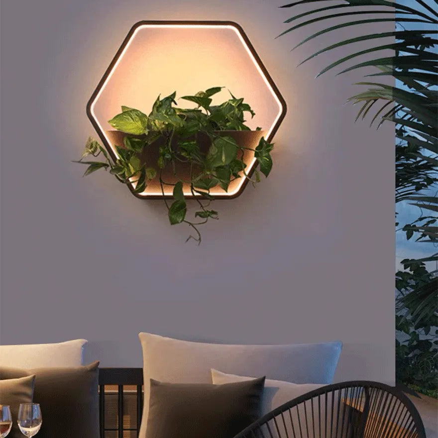 Cette applique murale LED extérieure au style créatif est fabriquée en métal de haute qualité. Son design unique intègre un espace pour placer des pots de fleurs, ce qui améliore l'esthétique de l'éclairage. Elle offre d'excellentes performances étanches et peut résister à diverses conditions climatiques difficiles.