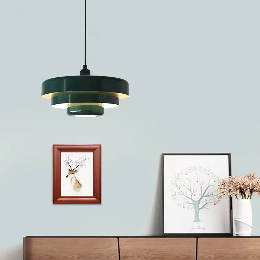 Cette suspension métallique créative présente un design inspiré du gâteau, apportant une touche moderne et idéale pour les espaces de salle à manger. Fabriquée en métal de haute qualité, sa surface est traitée avec un revêtement de peinture, offrant une texture élégante. Disponible en plusieurs couleurs, elle s'intègre parfaitement à la décoration de votre salle à manger, ajoutant une ambiance artistique unique.