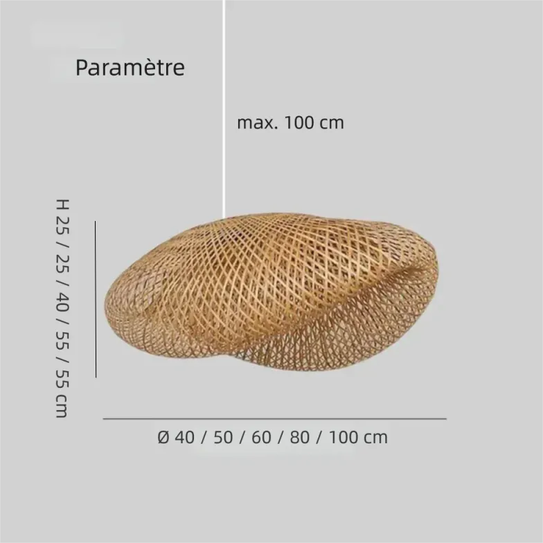 La suspension japonaise en bambou tressé pour salle à manger offre une touche naturelle à votre espace. Fabriquée à la main avec du bambou de haute qualité, elle apporte une lumière douce et chaleureuse. Disponible en plusieurs tailles, idéale pour personnaliser votre décoration de salle à manger.