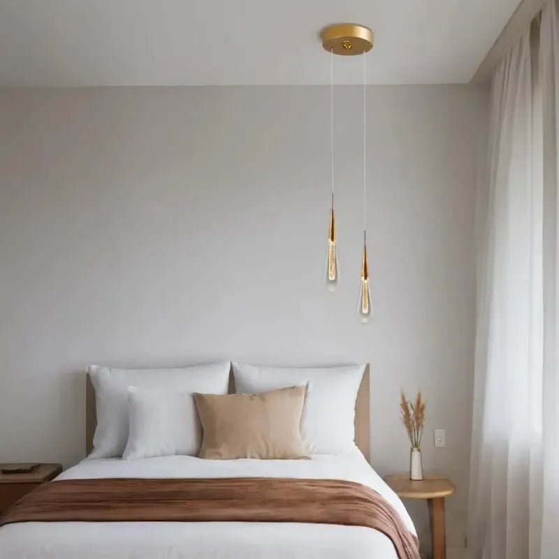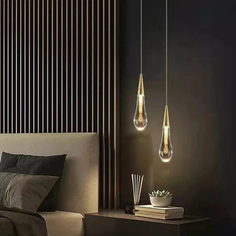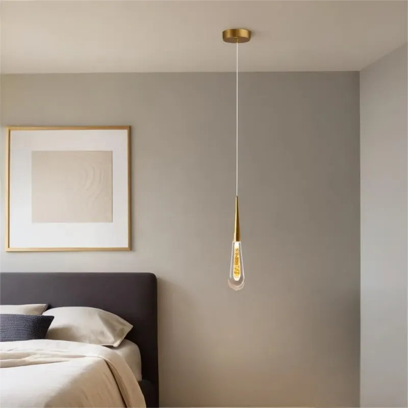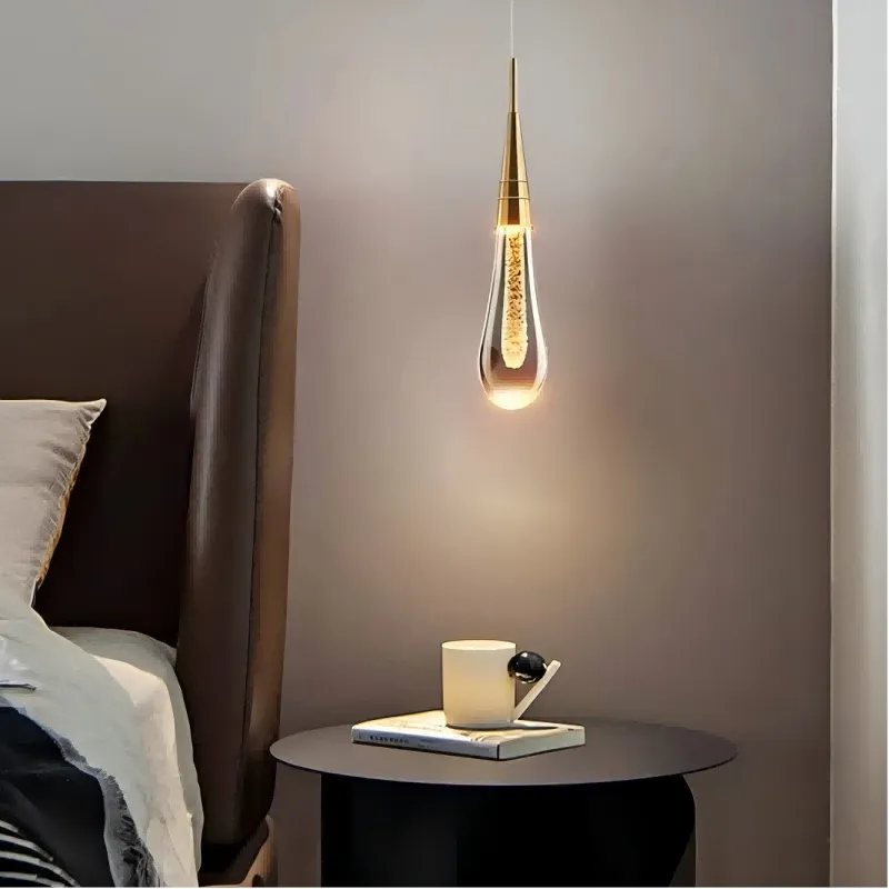 Cette suspension goutte d'eau en cristal créatif apporte une touche de luxe à votre chambre. Fabriquée en métal et cristal, elle combine modernité et élégance. Son design unique en forme de goutte d'eau illumine délicatement votre chevet tout en étant économe en énergie.